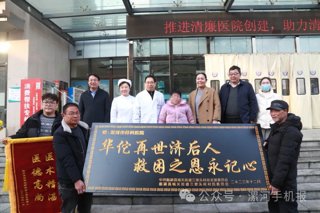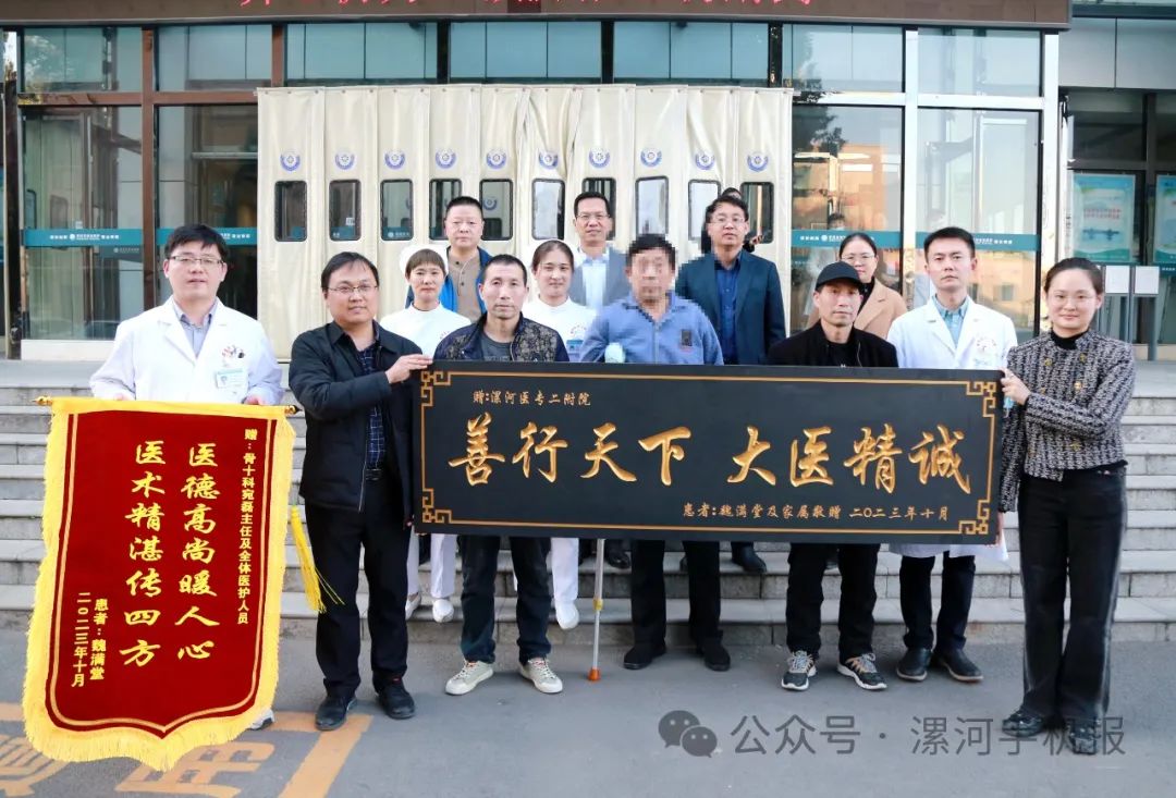 “華佗再世濟后人 救困之恩永記心”、“善行天下 大醫(yī)精誠”、“醫(yī)德高尚暖人心 醫(yī)術精湛傳四方”……連日來,臨潁縣、舞陽縣、召陵區(qū)的多位患者將一面面匾額、錦旗送到漯河市骨科醫(yī)院(漯河醫(yī)專二附院)的醫(yī)務人員手中,感謝醫(yī)院對他們開展的醫(yī)療救助和悉心治療。