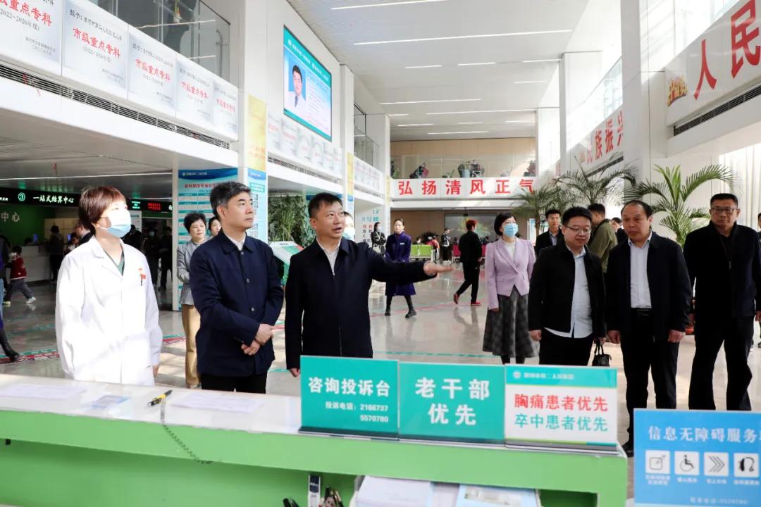 4月3日上午,市衛(wèi)健委黨組書記、主任宋耀生帶領(lǐng)市衛(wèi)健委創(chuàng)文督導(dǎo)組蒞臨市二院督導(dǎo)檢查創(chuàng)文工作,市二院黨委書記魏松,院長王瑾攜班子成員及相關(guān)職能部門負(fù)責(zé)同志陪同檢查。
