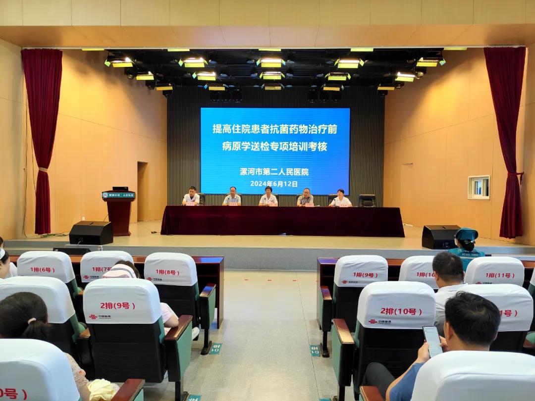 為貫徹落實(shí)國家衛(wèi)健委醫(yī)療質(zhì)量安全及河南省質(zhì)控工作改進(jìn)目標(biāo),提高抗菌藥物使用科學(xué)性、規(guī)范性,進(jìn)一步提升病原學(xué)送檢意識,按照醫(yī)院感控委員會工作計(jì)劃,6月12日下午,市二院感控辦、醫(yī)務(wù)科、藥劑科聯(lián)合,在12樓學(xué)術(shù)報(bào)告廳開展了“提高住院患者抗菌藥物治療前病原學(xué)送檢率”專項(xiàng)培訓(xùn)考核工作。院長王瑾、副院長張曉東及臨床各科室主任、護(hù)士長、醫(yī)生、護(hù)士等200余人參加。
