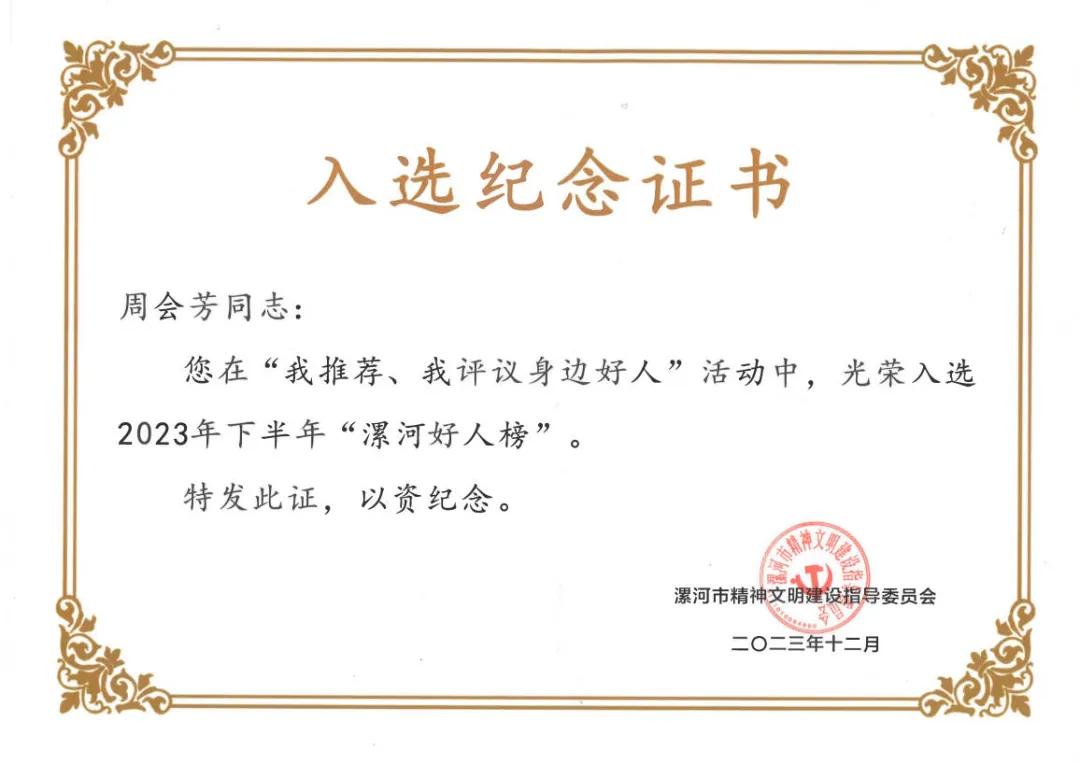 其中,來自漯河市骨科醫(yī)院(漯河醫(yī)專二附院、漯河市立醫(yī)院)的周會芳、徐景蓮光榮入選2023年下半年“漯河好人榜”!