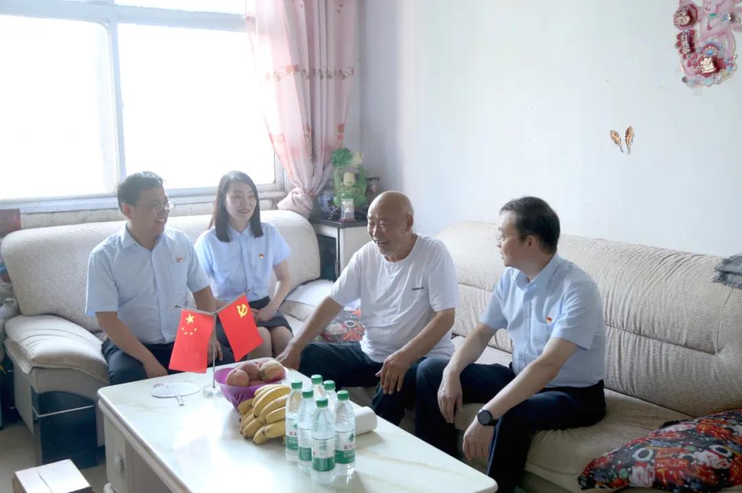 在老黨員張德海家中,院長李奎向其送上節(jié)日的祝福和慰問品,并詳細(xì)詢問了老黨員的家庭情況、身體狀況,傾聽其回顧愛黨、護黨、與黨同行的事跡。他表示,院黨委將一如既往地關(guān)心和支持老黨員們的生活,確保他們的晚年生活幸福安康。
