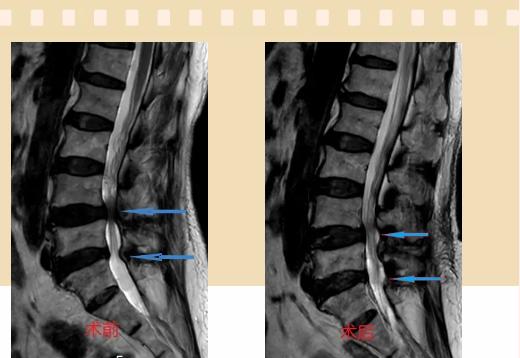 手術(shù)采用三個(gè)微創(chuàng)小切口,兩個(gè)節(jié)段減壓手術(shù)時(shí)間2.5小時(shí),出血50ml。術(shù)后2天腰圍保護(hù)下床活動(dòng),術(shù)后5天順利出院。