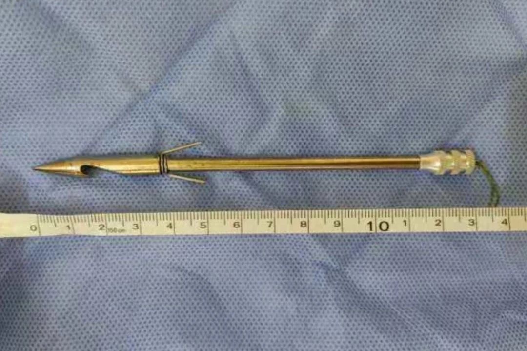 確保在取出魚鉤的同時,不對周圍的組織造成額外的傷害。8點15分左右患者在局部浸潤麻下進行手術,經(jīng)探查后魚鉤未傷及重要血管、神經(jīng)及肌腱,經(jīng)過緊張的十分鐘,魚鉤終于被順利取出,隨后對傷口進行了仔細的清理和縫合,用敷料仔細包扎,確保傷口能夠順利愈合。