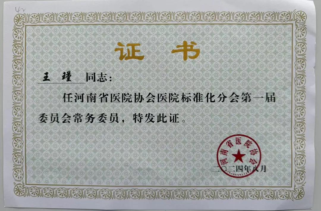 漯河市二院院長王瑾當選河南省醫(yī)院協(xié)會醫(yī)院標準化管理分會常務委員