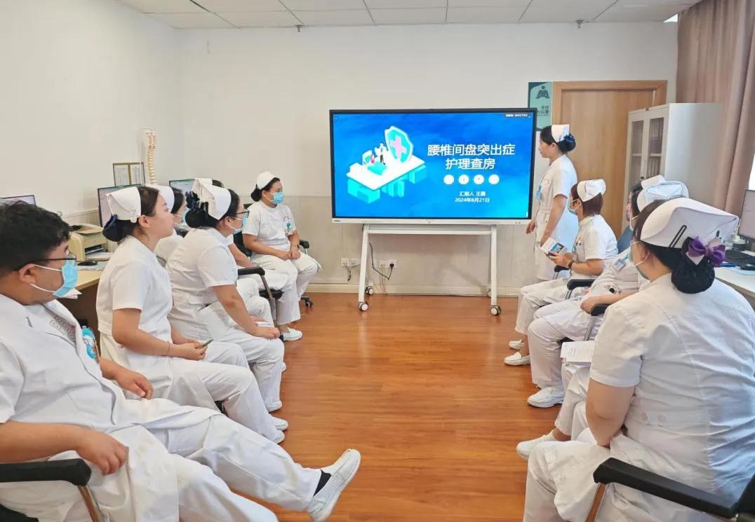 在進(jìn)行護(hù)理查房前,首先由責(zé)任護(hù)士王露介紹患者的病史及疾病相關(guān)知識與治療,針對該患者的護(hù)理重點(diǎn)制定專業(yè)、個性化的護(hù)理管理情況,隨后責(zé)任護(hù)士帶領(lǐng)大家進(jìn)行床旁查房,護(hù)士長關(guān)切的詢問了患者病情狀況,了解是否存在未解決的護(hù)理問題,并從患者實(shí)際情況出發(fā),制定出具體的護(hù)理措施。此外,護(hù)士長還交代患者術(shù)后注意事項(xiàng),叮囑患者術(shù)后如何規(guī)范正確進(jìn)行腰椎術(shù)后的功能鍛煉。