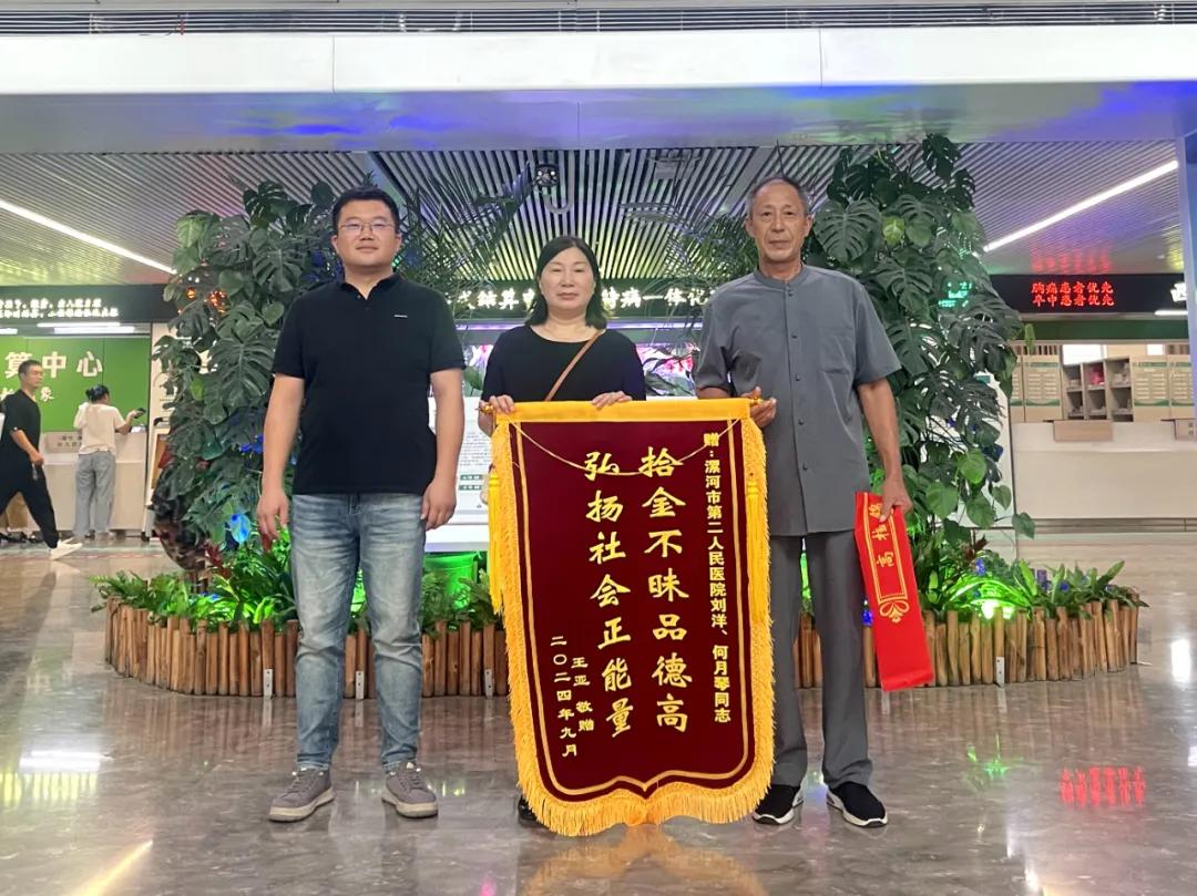 后來,經(jīng)醫(yī)院相關(guān)工作人員,根據(jù)錢包里面的信息,多方渠道尋找,最終與失主王先生取得了聯(lián)系,核對(duì)確認(rèn)身份后,將錢包物歸原主。失主連聲感謝,對(duì)醫(yī)務(wù)人員拾金不昧的精神連連點(diǎn)贊,并特意送來寫有拾金不昧品德高,弘揚(yáng)社會(huì)正能量的錦旗一面。