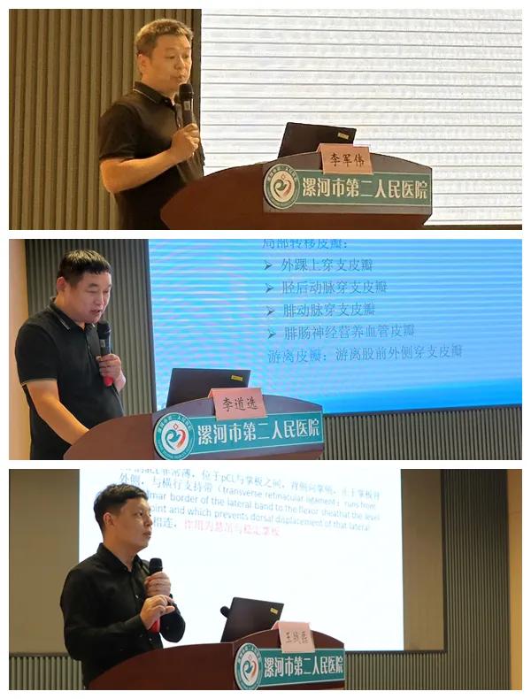 在學(xué)術(shù)交流環(huán)節(jié),河南省人民醫(yī)院手足顯微和創(chuàng)面修復(fù)外科主任謝振軍教授就“慢性創(chuàng)面的皮瓣修復(fù)”,市骨科醫(yī)院骨四科主任李俊明就“穿支皮瓣聯(lián)合Masquelet技術(shù)治療四肢骨及皮膚軟組織缺損”,市二院顯微外科主任沈衛(wèi)軍就“幾種常見的肌腱自發(fā)性離斷”,市中心醫(yī)院創(chuàng)傷骨科主任李軍偉就“超顯微技術(shù)在阿爾茨海默病中的應(yīng)用進展”,市骨科醫(yī)院骨四科副主任醫(yī)師李道選就“游離股前外側(cè)穿支皮瓣修復(fù)足踝部皮膚缺損”,市二院顯微外科副主任醫(yī)師王戰(zhàn)磊就“手部側(cè)副韌帶損傷的診療方法”做了專題講座及分享交流。