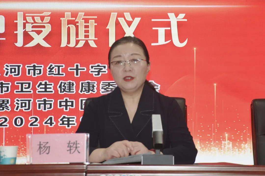 為積極響應(yīng)社會公益號召,弘揚紅十字精神,促進醫(yī)療衛(wèi)生與志愿服務(wù)深度融合,2024年9月25日上午,市紅十字會、市衛(wèi)健委聯(lián)合市中醫(yī)院在醫(yī)院門診四樓學術(shù)報告廳隆重舉辦“喜迎國慶 志愿同行——漯河市中醫(yī)院紅十字志愿服務(wù)隊揭牌授旗儀式”。市紅十字會黨組書記、常務(wù)副會長孫潁華,市衛(wèi)健委黨組副書記、副主任王向良,市中醫(yī)院黨委書記楊軼,市中醫(yī)院黨委副書記、副院長楚勝,市紅十字會黨組成員、副會長李世杰出席揭牌授旗儀式。各縣區(qū)、功能區(qū)紅十字會負責同志、市直醫(yī)療衛(wèi)生機構(gòu)和漯河醫(yī)專各附屬醫(yī)院分管領(lǐng)導(dǎo)以及市中醫(yī)院志愿者職工代表近200人參加。會議由楚勝主持。
