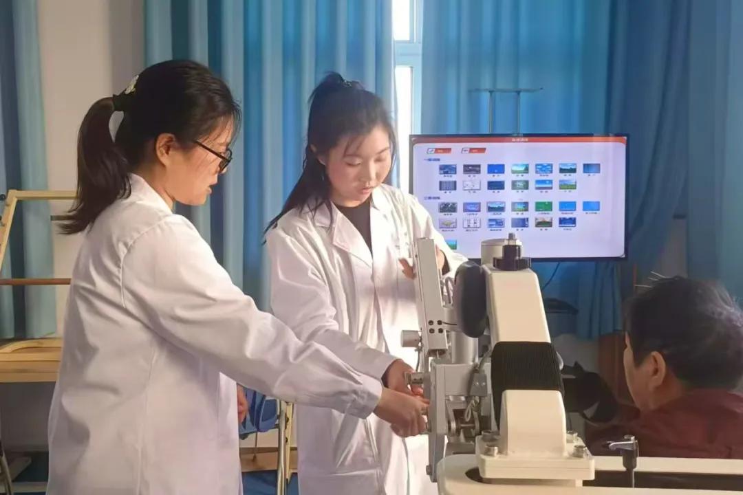 康復(fù)治療帶教老師帶領(lǐng)見習(xí)人員熟悉儀器設(shè)備,指導(dǎo)見習(xí)人員規(guī)范操作。