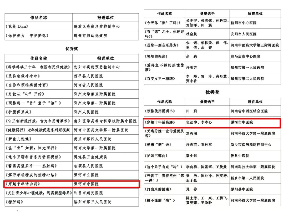 自3月28日以來,經(jīng)過初賽、分主題決賽、總決賽的激烈角逐,漯河市中醫(yī)院手術室主管護師包亞沖和外一科主治中醫(yī)師李本心共同創(chuàng)作的科普作品《穿越千年話藥膳》榮獲第六屆河南省健康科普技能大賽表演類優(yōu)秀獎,包亞沖創(chuàng)作的《穿越千年話山藥》榮獲第六屆河南省健康科普技能大賽科普作品視頻類優(yōu)秀獎。
