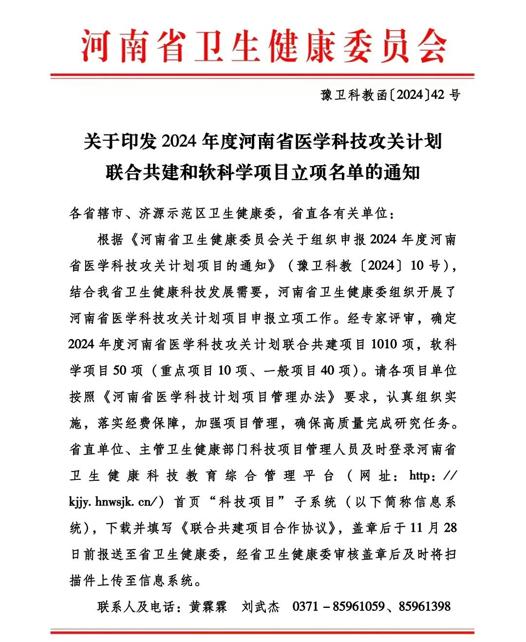 近日,河南省衛(wèi)健委發(fā)布了《關(guān)于印發(fā)2024年度河南省醫(yī)學科技攻關(guān)計劃聯(lián)合共建和軟科學項目立項名單的通知》,漯河市中醫(yī)院作為主持單位,共有1個項目獲得立項,此次為醫(yī)院在該類項目申報中首次獲得立項,這是繼醫(yī)院博士創(chuàng)新實踐基地獲批以來,科技研發(fā)的又一新突破。