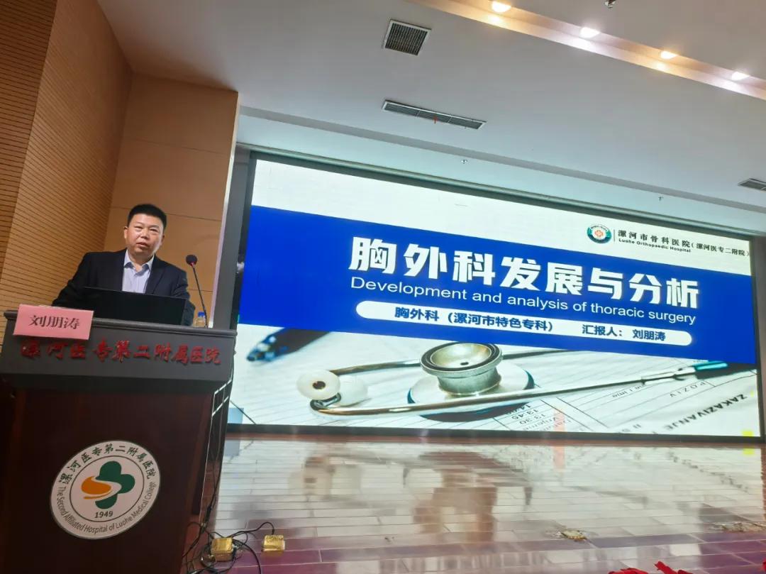 漯河醫(yī)專二附院胸外科主任劉朋濤則從專科發(fā)展的角度,為大家?guī)砹恕缎赝鈱?瓢l(fā)展分析》。他結(jié)合國(guó)內(nèi)外胸外科的最新發(fā)展動(dòng)態(tài),深入分析了胸外科??平ㄔO(shè)面臨的機(jī)遇與挑戰(zhàn),并提出了相應(yīng)的對(duì)策和建議。