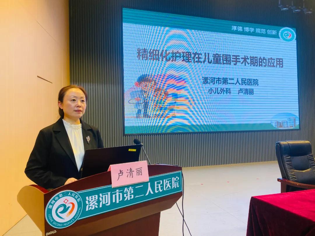 市二院小兒外科護(hù)士長(zhǎng)盧清麗分享了《精細(xì)化護(hù)理在兒童圍手術(shù)期的應(yīng)用》,從兒童圍手術(shù)期生理、心理特點(diǎn)出發(fā),圍繞精細(xì)化護(hù)理在圍手術(shù)期各階段的實(shí)施進(jìn)行詳細(xì)的講解。