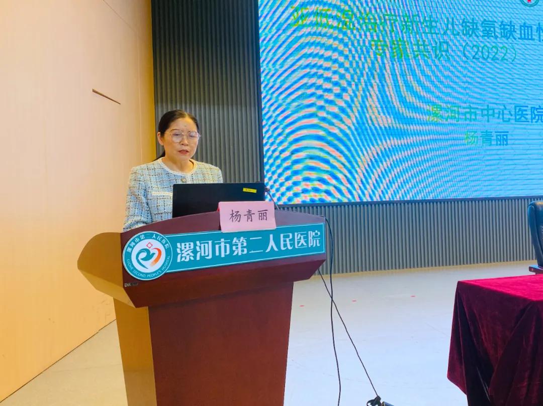 在學(xué)術(shù)會(huì)交流環(huán)節(jié),市中心醫(yī)院 NICU(PICU)護(hù)士長(zhǎng)楊青麗為大家解析《亞低溫治療新生兒缺血缺氧性腦病的專家共識(shí)》,并結(jié)合臨床實(shí)踐為臨床醫(yī)護(hù)人員提供了科學(xué)規(guī)范的治療及護(hù)理指導(dǎo)。