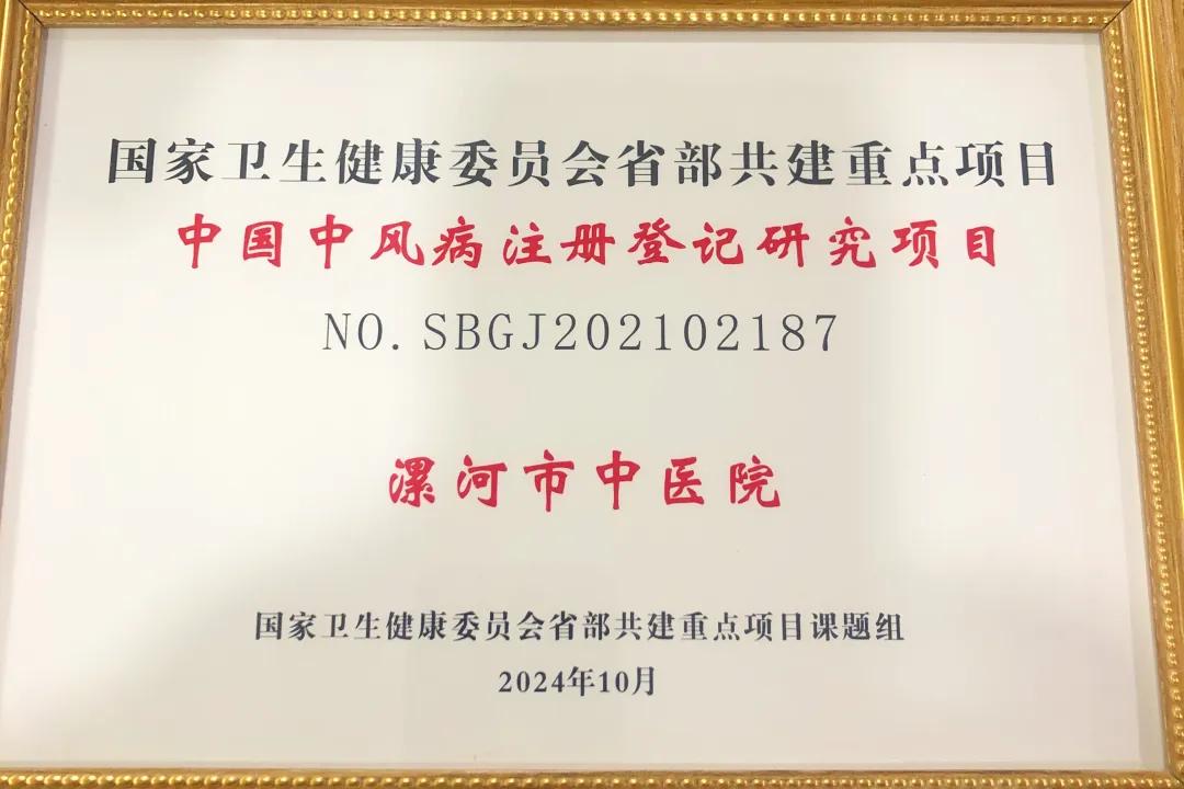 近日,漯河市中醫(yī)院被榮幸選拔為國家衛(wèi)生健康委員會省部共建重點(diǎn)項(xiàng)目課題組協(xié)助單位,首次參與了中國中風(fēng)病注冊登記研究項(xiàng)目。