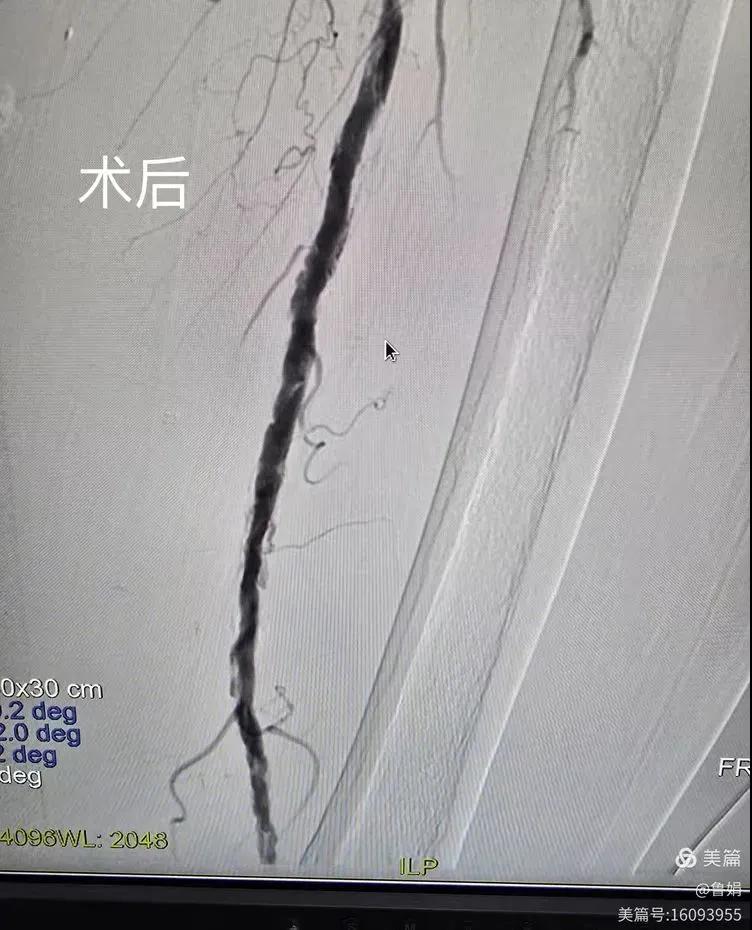 據(jù)悉,該患者,女,73歲,下肢動(dòng)脈硬化閉塞癥,“以靜息痛,間歇性跛行”入院,CTA評估:股淺動(dòng)脈,腘動(dòng)脈間斷性多段重度狹窄,外二科血管外科團(tuán)隊(duì)根據(jù)患者病情,結(jié)合檢查結(jié)果,經(jīng)過科室會(huì)診后,決定對該病人行介入治療。手術(shù)由周創(chuàng)業(yè)副主任與北大一院血管外科專家郭宏杰教授聯(lián)合開展,對股淺動(dòng)脈,腘動(dòng)脈重度閉塞段行血管開通+藥涂球囊擴(kuò)張成形,術(shù)后狹窄明顯緩解,血流恢復(fù)!