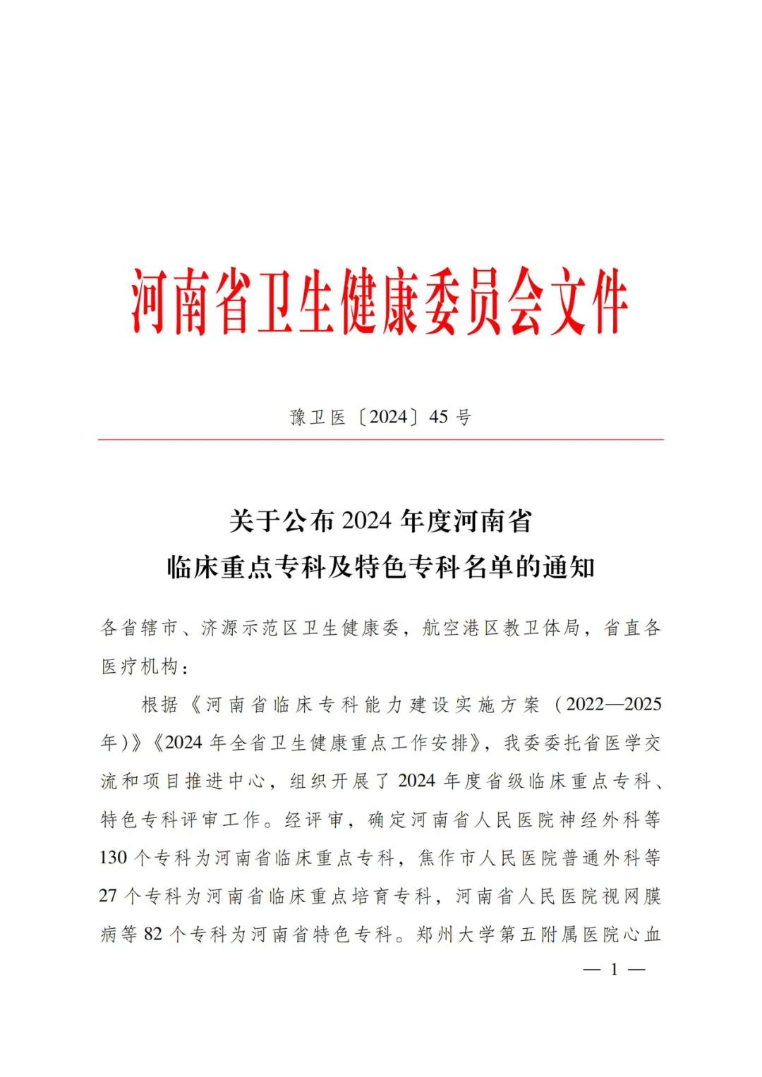 12月24日,河南省衛(wèi)生健康委下發(fā)了《關(guān)于公布2024年度河南省臨床重點專科及特色??泼麊蔚耐ㄖ罚ㄔバl(wèi)醫(yī)〔2024〕45號)。市二院兒科、腫瘤科(腫瘤放療科、腫瘤內(nèi)科)、康復(fù)醫(yī)學(xué)科成功通過評審,被確定為河南省臨床重點培育專科。