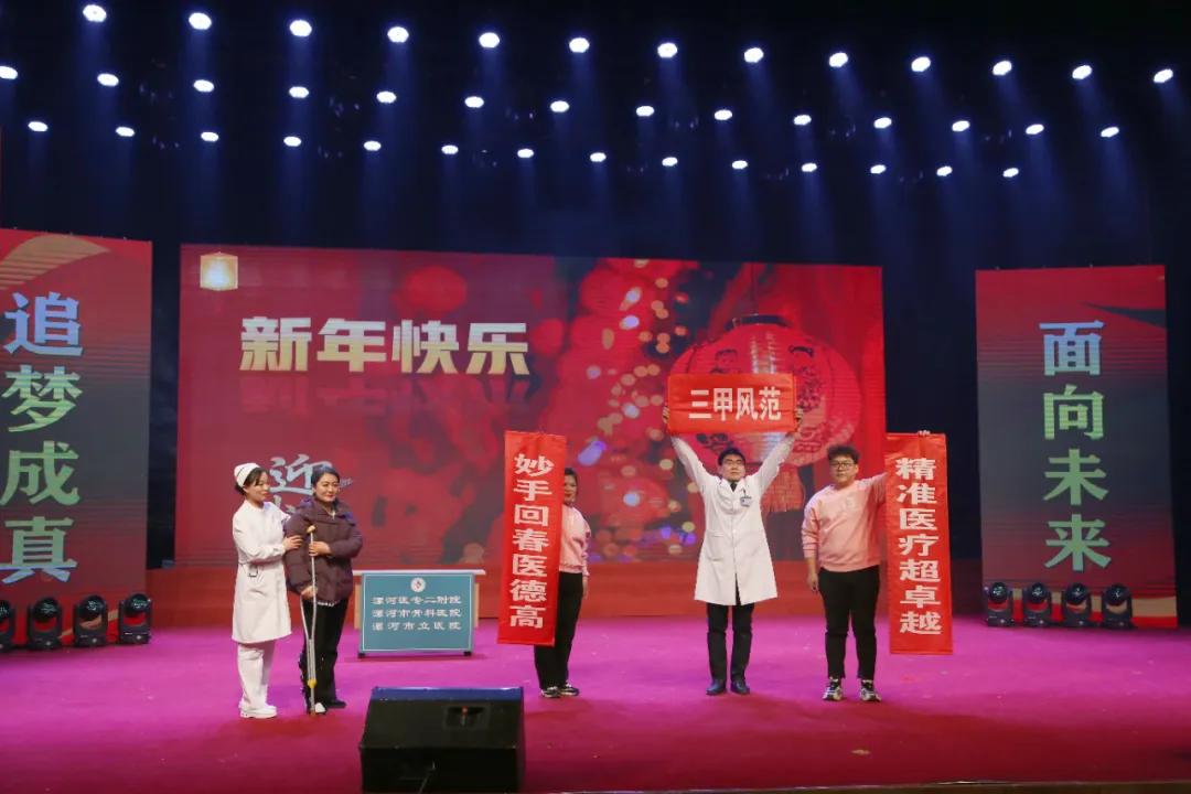 為慶祝漯河醫(yī)專二附院(漯河市骨科醫(yī)院、漯河市立醫(yī)院)建院七十五周年,1月21日,漯河醫(yī)專二附院2025年迎新春聯(lián)歡會在漯河市科教文化藝術(shù)中心大劇院隆重舉行。漯河醫(yī)學(xué)高等??茖W(xué)校校長張祎捷,市衛(wèi)生健康委副主任于宏,市醫(yī)保局副局長于懷江,漯河醫(yī)專黨委副書記邊曉峰,市科協(xié)副主席臧明濤,市總工會四級調(diào)研員李敏,漯河醫(yī)專紀(jì)委書記王蕾,漯河醫(yī)專副校長張福華、馬永超,漯河醫(yī)專二附院黨委書記柴運(yùn)洪,漯河醫(yī)專二附院院長王齊超,漯河醫(yī)專黨辦主任楊曉宇,漯河醫(yī)專行政辦主任申耀強(qiáng),漯河醫(yī)專團(tuán)委書記周沛,市衛(wèi)健委醫(yī)政科科長胡艷麗,市總工會文教衛(wèi)工會主任谷賀衛(wèi),郾城區(qū)龍塔街道辦事處主任李瑩,郾城區(qū)巴山路居委會書記王梅芝,郾城區(qū)伊坪小學(xué)校長徐偉濤等出席。