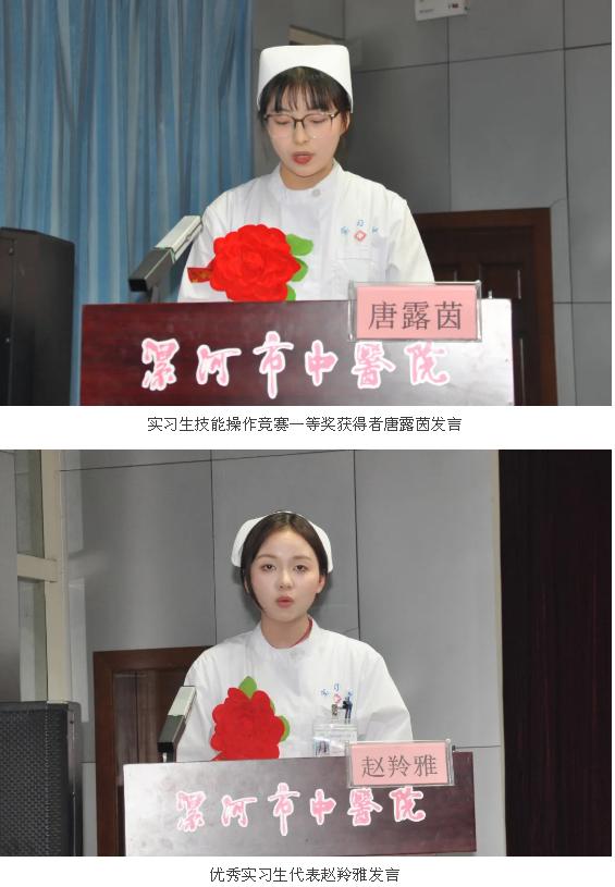 會上,實習生技能操作競賽一等獎獲得者唐露茵及優(yōu)秀實習生代表趙羚雅先后上臺發(fā)言,她們講述了優(yōu)秀成果背后的動人故事和體會,并對醫(yī)院和老師表達了感謝。她們表示,通過實習,對護理事業(yè)有了更深刻的理解,更加明白護理是一項充滿挑戰(zhàn)與責任的職業(yè),也是一份充滿愛與奉獻的事業(yè)。在今后的工作中,將保持對護理事業(yè)的熱愛和執(zhí)著,追求卓越,成為更加出色的護理人員。