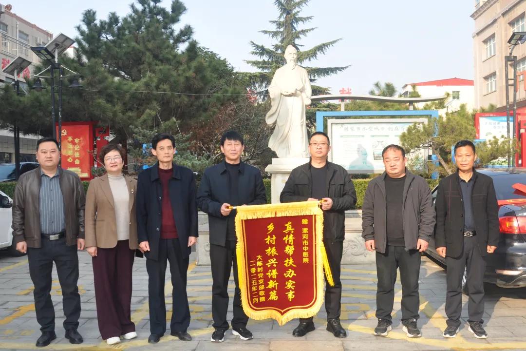2月28日上午,源匯區(qū)大劉鎮(zhèn)黨委書記郭嘉琦帶領(lǐng)鎮(zhèn)干部同大陳村“兩委”干部一行來到漯河市中醫(yī)院,將“深情幫扶辦實事,鄉(xiāng)村振興譜新篇 ”和“駐村幫扶勇?lián)?dāng),恪盡職守解民憂”兩面錦旗分別送到漯河市中醫(yī)院黨委副書記、副院長張文吉和醫(yī)院派駐大陳村“第一”書記朱振華的手中,以此感謝漯河市中醫(yī)院兩年多來對大劉鎮(zhèn)大陳村脫貧攻堅以及鄉(xiāng)村振興工作的傾情幫扶和大力支持,院黨委副書記、副院長張文吉帶領(lǐng)相關(guān)科室負(fù)責(zé)人接待并召開座談會。