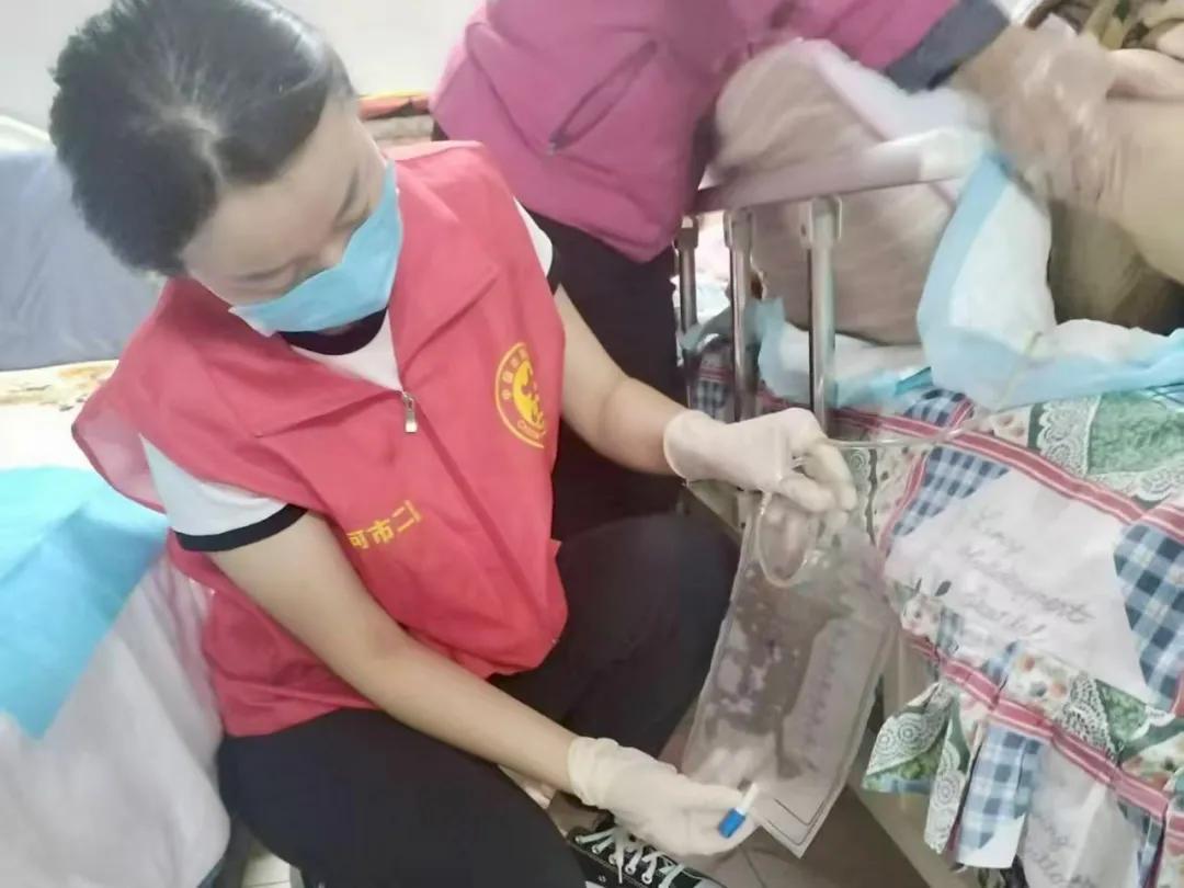 86歲的張奶奶因腦梗塞后遺癥導致骶尾部及全身多處皮膚壓瘡,需要暫時留置尿管,出院前,護士詳細為她及家屬講解了居家護理注意事項,并推薦了“豫健護理到家”服務。3月28日,考慮到老人行動不便、往返醫(yī)院困難,家屬通過平臺預約了上門更換尿管服務。老年醫(yī)學科護士長接到豫健護理到家平臺下單通知,立即派資深護士攜帶相關護理用品來到張奶奶家中。護理人員嚴格按照操作規(guī)范,輕柔地為老人更換尿管,并耐心指導家屬日常護理要點,如觀察尿液顏色、保持管路通暢及皮膚傷口護理等。“不用來回奔波,在家就能享受和醫(yī)院一樣的服務,真的太方便了!”張奶奶的女兒連連稱贊。
