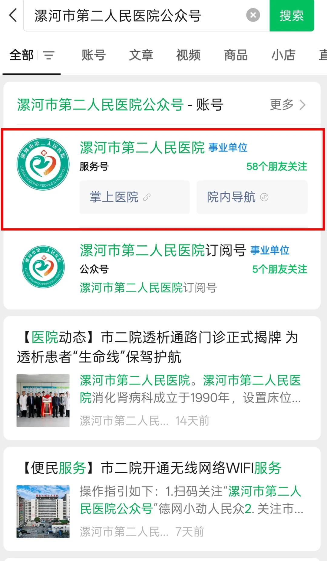 方法一:微信搜索“漯河市第二人民醫(yī)院”公眾號進入主頁面,關注服務號之后,點擊醫(yī)療服務→豫健護理到家項目。