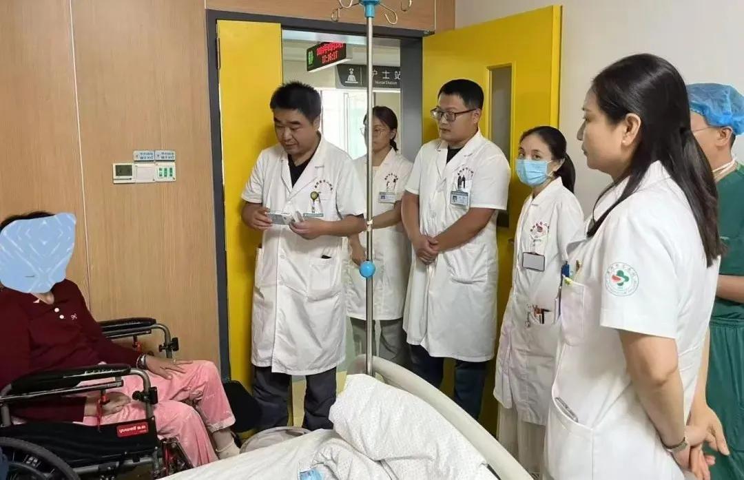 接診以后,該院中醫(yī)骨傷科甄相周主任帶領團隊立即啟動加速康復外科多學科討論,并制定了詳細的治療方案......入院進行ERAS健康宣教,圍術期給予營養(yǎng)支持;術前結合中醫(yī)治療預防術后惡心、嘔吐、便秘,術中不放置引流管、尿管,預防感染;手術采用“前側(cè)入路(DAA)全髖關節(jié)置換”微創(chuàng)精準治療,康復訓練提前介入,有效保護殘留肌群功能,減少患者肌肉創(chuàng)傷和脫位風險。整個手術過程非常順成功,從麻醉到縫合包扎用時不足1小時,從手術到下床僅用了22個小時,切實為患者消除病痛,使其逐步恢復到健康狀態(tài)。
