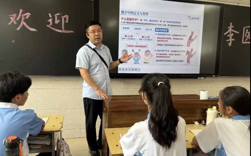 在郾城區(qū)實驗中學,神經內科二病區(qū)副主任李闖圍繞就《健康中國,中風識別行動》進行授課。他結合多年臨床經驗,圍繞什么是腦卒中、腦卒中的類型、發(fā)病原因與機制、高危因素、癥狀表現(xiàn)、緊急處理與急救等多方面內容展開講解,并教授“中風 120”口訣。通過情景模擬演示發(fā)現(xiàn)疑似癥狀后的正確應對流程。針對學生群體的生活習慣,普及疾病基礎知識與科學預防方法,強調要規(guī)律作息,避免熬夜、適度運動、減少高糖飲食。