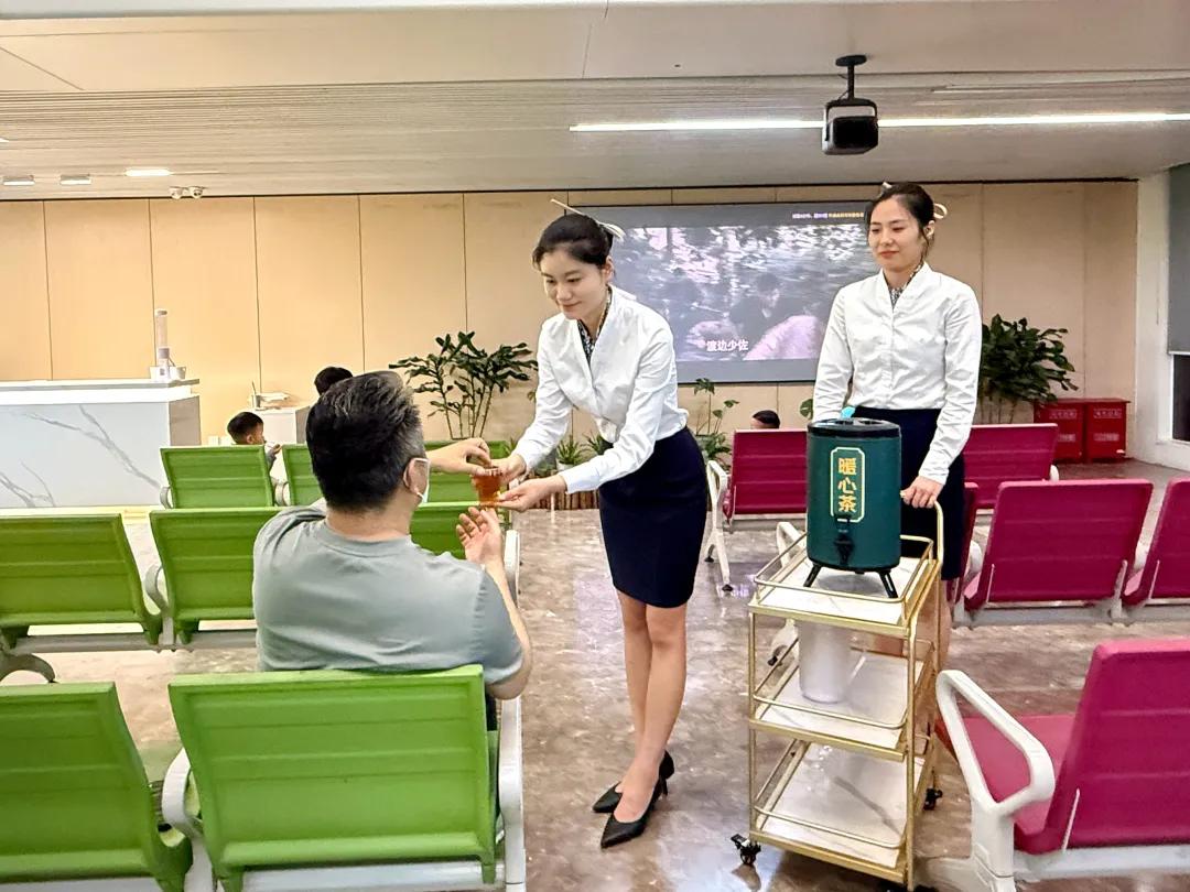 近年來,市二院通過嚴格落實“改善就醫(yī)感受 提升患者體驗”六聚焦六提升行動方案、“便民就醫(yī)少跑腿”七大舉措和“切實解決群眾就醫(yī)急難愁盼問題十條規(guī)定”要求等措施,實施“溫暖服務暖心工程”,設立了暖心茉莉花茶、冷熱直飲水機、同時在觀影區(qū)配備空氣凈化設備,既能保持涼爽舒適的溫度,又能確??諝馇逍?,開展健康科普周周講,如高血壓、糖尿病日常管理,腦卒中預防等實用知識等一系列便民服務措施。讓人民群眾在就醫(yī)就診中感受到實實在在的獲得感、幸福感、安全感。