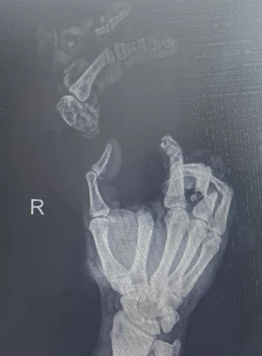 患者入院后,經(jīng)X線檢查及創(chuàng)面檢查,醫(yī)生診斷為右手食指、中指及環(huán)指旋轉(zhuǎn)撕脫性離斷。接診的顯微手足燒傷整形外科醫(yī)護人員立即完善了各項術(shù)前準(zhǔn)備,并安排急診手術(shù)。因創(chuàng)面污染嚴(yán)重以及離斷肢體損傷程度較重,手術(shù)歷時近10小時。在沈衛(wèi)軍主任的帶領(lǐng)下,科室團隊成功為其進行了創(chuàng)面擴創(chuàng)、斷肢再植術(shù),術(shù)后患指血運良好,在進一步觀察治療中。
