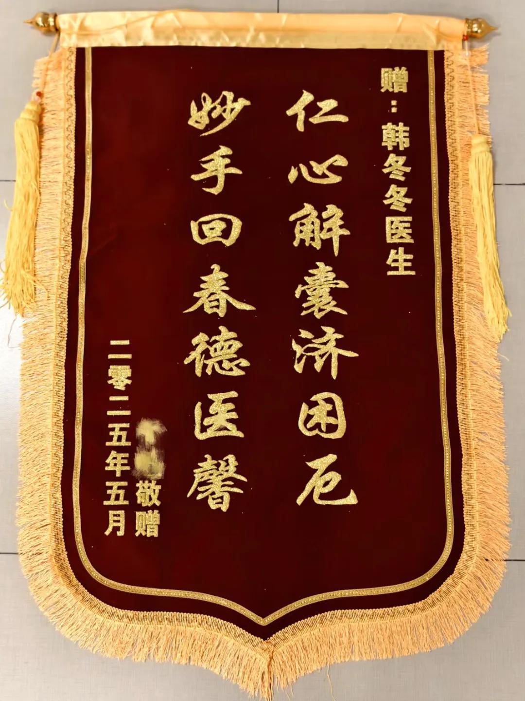 5月23日上午,患者黃阿姨在家人攙扶下,來到市二院急診科,滿懷感激地將一面寫有“妙手回春德醫(yī)馨,仁心解囊濟困厄”字樣的錦旗送給急診科醫(yī)護團隊及韓冬冬醫(yī)生,她熱淚盈眶、深深鞠躬以表達謝意。