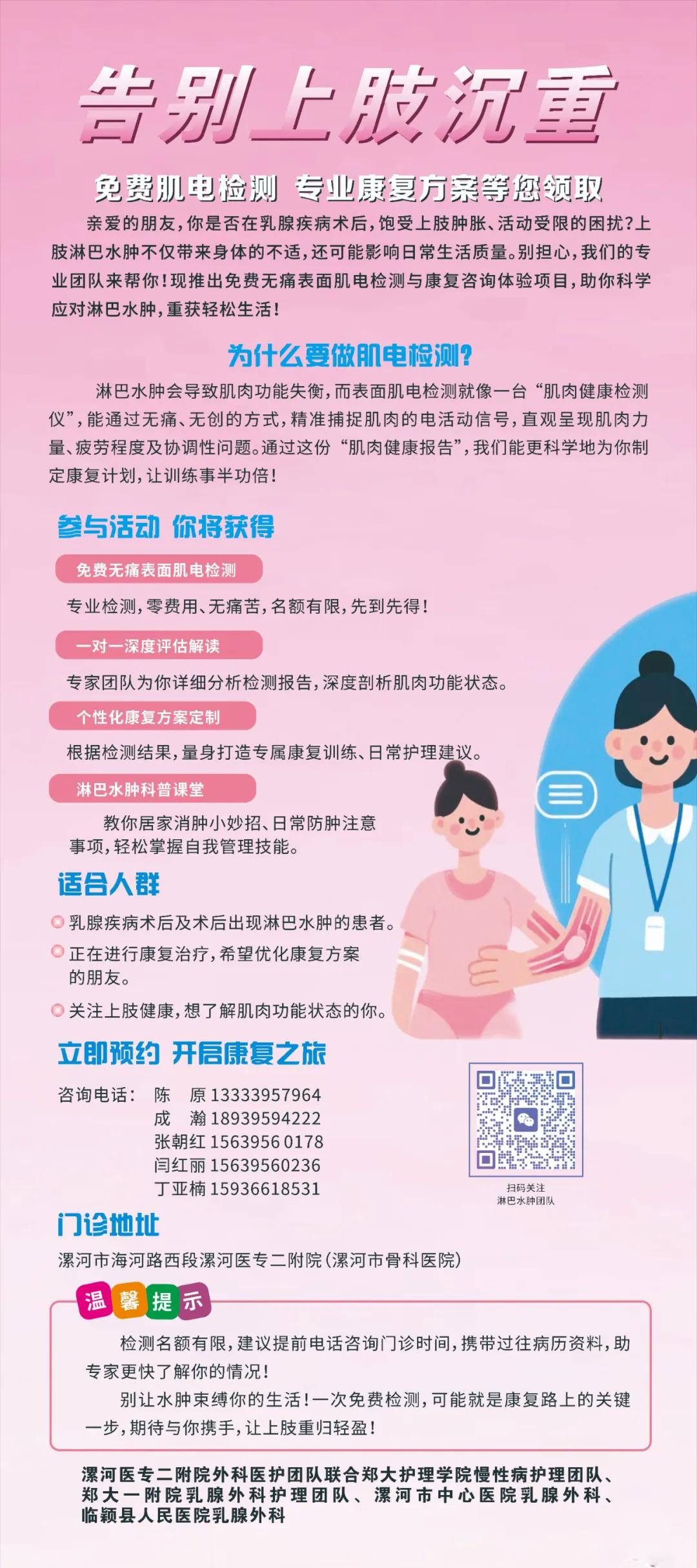 漯河醫(yī)專二附院聯(lián)合省市級多專家團隊推出公益項目,于6月20日開放免費無痛檢測名額,含一對一報告解讀與康復指導,助您科學應(yīng)對水腫困擾。立即致電咨詢預約,讓專業(yè)團隊為您的上肢健康保駕護航!