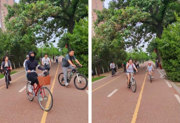 本次活動(dòng)以“喜迎七一”為主題,將愛(ài)黨愛(ài)國(guó)教育、團(tuán)隊(duì)建設(shè)與健康運(yùn)動(dòng)有機(jī)結(jié)合。青年朋友們精神飽滿(mǎn)地踏上單車(chē),沿著精心規(guī)劃的騎行路線(xiàn)出發(fā)。騎行隊(duì)伍宛如一條流動(dòng)的青春彩帶,穿梭于沙澧河畔的綠樹(shù)碧水之間。大家一路歡聲笑語(yǔ),洋溢著青春的活力與朝氣,以實(shí)際行動(dòng)踐行低碳環(huán)保理念,成為景區(qū)一道亮麗的風(fēng)景線(xiàn)。