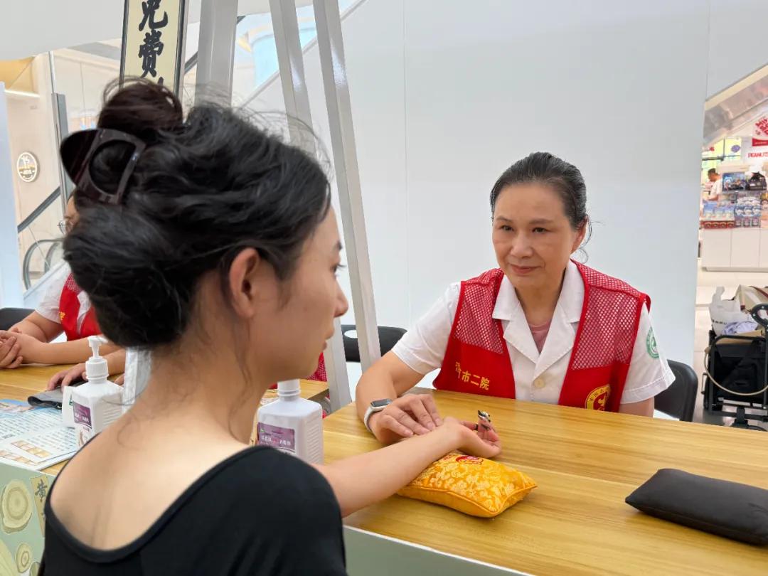 活動現(xiàn)場,市二院中醫(yī)針灸科精心設置了中醫(yī)把脈、中醫(yī)養(yǎng)生茶,耳穴壓豆,刮痧,火龍罐,艾灸,AI把脈,香囊展示,中藥材展示,測血壓等多個義診攤位,由10余名資深中醫(yī)專家組成的志愿服務團隊“坐鎮(zhèn)”,與市民群眾面對面交流,針對檢查中發(fā)現(xiàn)的問題,為群眾提供疾病防治建議、健康管理方案,給出針對性的預防和診療建議。