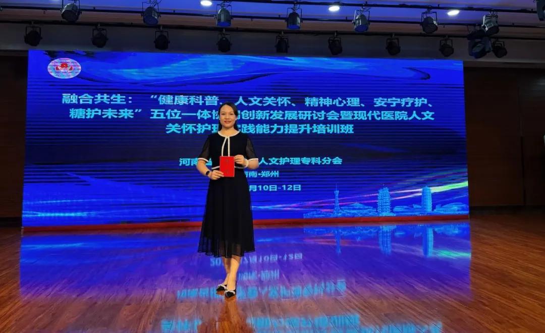 7月10日至12日,由河南省護(hù)理學(xué)會(huì)主辦的“融合共生:‘健康科普、人文關(guān)懷、精神心理、安寧療護(hù)、糖護(hù)未來’五位一體協(xié)同創(chuàng)新發(fā)展研討會(huì)暨現(xiàn)代醫(yī)院人文關(guān)懷護(hù)理實(shí)踐能力提升培訓(xùn)班”圓滿落幕。漯河醫(yī)專二附院(漯河市骨科醫(yī)院、漯河市立醫(yī)院)泌尿肛腸外科護(hù)士長(zhǎng)、人文護(hù)理學(xué)組組長(zhǎng)陳笑寒在大會(huì)進(jìn)行發(fā)言。
