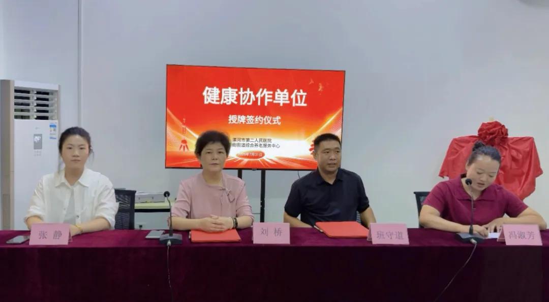 為應(yīng)對人口老齡化浪潮,滿足老年人多元化健康需求,7月31日上午,市二院與馬路街街道綜合養(yǎng)老服務(wù)中心舉行“健康協(xié)作單位”授牌儀式,市二院副院長劉橋、醫(yī)聯(lián)體辦公室副主任張靜出席儀式。