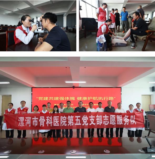 為深化黨建引領(lǐng)作用,增強(qiáng)黨組織凝聚力,同時(shí)關(guān)愛(ài)干警身心健康,8月13日,受漯河市中級(jí)人民法院邀請(qǐng),漯河醫(yī)專(zhuān)二附院(漯河市骨科醫(yī)院、漯河市立醫(yī)院)第五黨支部、漯河市中級(jí)人民法院執(zhí)行局黨支部與源匯區(qū)人民法院執(zhí)行局黨支部聯(lián)合開(kāi)展“黨建共建強(qiáng)體魄 健康護(hù)航執(zhí)行路”主題黨建活動(dòng)。第五黨支部和社會(huì)工作部積極協(xié)調(diào)組織智能骨科、眼科、心理學(xué)醫(yī)療專(zhuān)家及志愿者,為該單位職工帶來(lái)專(zhuān)業(yè)的健康知識(shí)講座與現(xiàn)場(chǎng)診療服務(wù)。