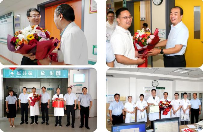 每到一個科室,醫(yī)院領導都將精心準備的鮮花、香甜的蛋糕以及貼心的慰問品送到每一位醫(yī)師手中。一句句 “辛苦了”“注意休息”,讓醫(yī)師們深切感受到醫(yī)院的關懷與支持。院領導們高度肯定并贊揚了醫(yī)師們在臨床工作中的辛勤付出與無私奉獻。他們強調(diào),醫(yī)務工作者是社會中最崇高的職業(yè)之一,醫(yī)師們憑借自己的專業(yè)智慧和汗水,日夜守護著患者的生命健康,是生命戰(zhàn)場上的 “最美逆行者”。