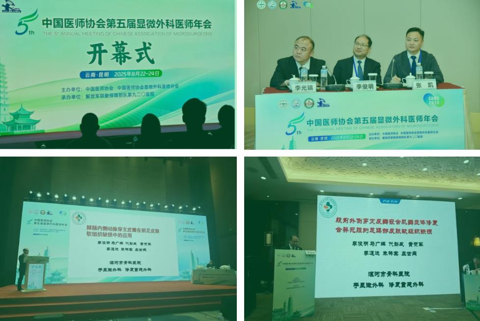 春城昆明,繁花似錦,群賢畢至。中國醫(yī)師協(xié)會第五屆顯微外科醫(yī)師年會于8月22日至8月24日在美麗的春城昆明召開,漯河醫(yī)專二附院(漯河市骨科醫(yī)院、漯河市立醫(yī)院)手顯微外科李俊明教授團隊受邀參加本次會議。本次會議以“精準顯微外科,創(chuàng)新融合發(fā)展”為主題,共同探討顯微外科技術的最新進展、臨床經驗的深度分享以及未來發(fā)展的戰(zhàn)略方向。