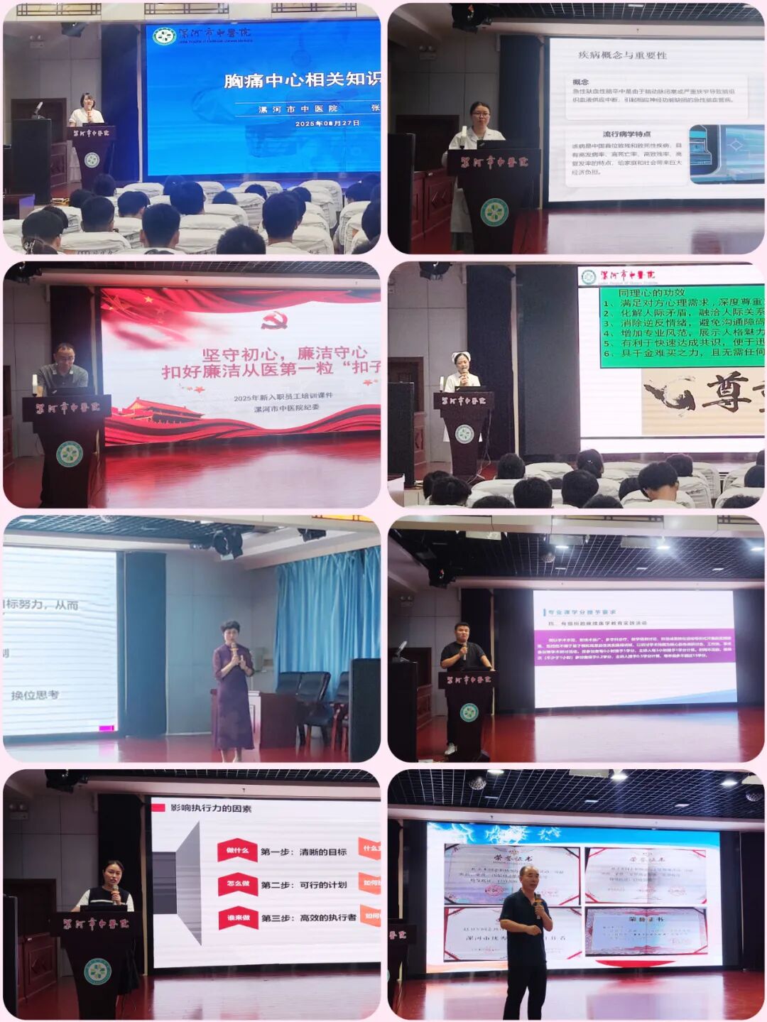 除了特色互動(dòng)環(huán)節(jié),醫(yī)院還精心規(guī)劃了系統(tǒng)化、全方位的培訓(xùn)課程,由班子成員及各職能科室負(fù)責(zé)人“傾囊相授”:從醫(yī)院文化、組織架構(gòu)到廉潔從醫(yī)紀(jì)律,從醫(yī)保政策解讀、醫(yī)患溝通技巧到醫(yī)療糾紛防范;從醫(yī)療質(zhì)量管理十八項(xiàng)核心制度、依法執(zhí)業(yè)規(guī)范,到傳染病防治法規(guī);從創(chuàng)文志愿工作要求、優(yōu)質(zhì)服務(wù)禮儀,到急救技能實(shí)操、再到規(guī)培學(xué)員專屬的培養(yǎng)方案與管理制度……課程內(nèi)容覆蓋職業(yè)發(fā)展全維度,既有理論高度,又有實(shí)踐深度,幫助新職工快速熟悉工作流程、掌握核心技能,為正式上崗做好充分準(zhǔn)備。