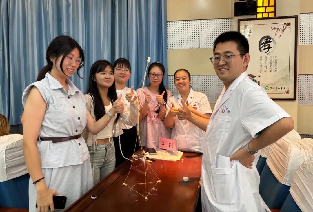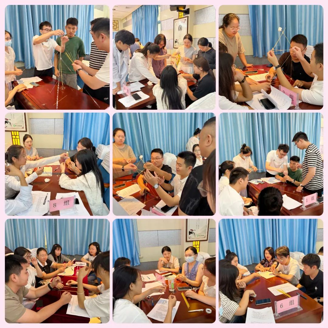 “團(tuán)結(jié)協(xié)作”互動(dòng)游戲:以14根意大利面、一個(gè)棉花糖、一卷膠帶為道具,將道具組合到一起做成一個(gè)模型固定到桌子上,哪個(gè)團(tuán)隊(duì)的模型最高最結(jié)實(shí),哪個(gè)團(tuán)隊(duì)獲勝。游戲過(guò)程中,大家相互配合、彼此鼓勁,從生疏到默契,從緊張到從容,在歡聲笑語(yǔ)中打破了陌生壁壘。楊軼不時(shí)為大家加油,告誡大家不能靠個(gè)人的英雄主義和單打獨(dú)斗,通力合作才能出結(jié)果,團(tuán)結(jié)才能共贏。現(xiàn)場(chǎng)“醫(yī)院大家庭”的溫馨氛圍愈發(fā)濃厚。直至中午12點(diǎn)多,大家還意猶未盡。