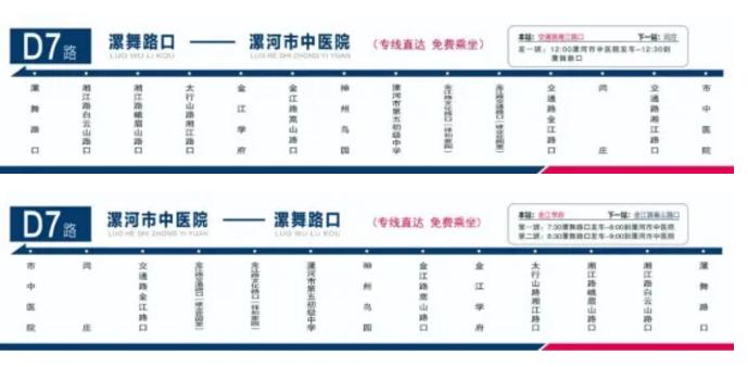 返程:交通路湘江路口、閆莊、交通路金江路口、金江路交通路口、金江路文化路口、漯河市第五初級(jí)中學(xué)、神州鳥園、金江路嵩山路口、金江學(xué)府、太行山路湘江路口、湘江路峨眉山路口、湘江路白云山路口、漯舞路口。