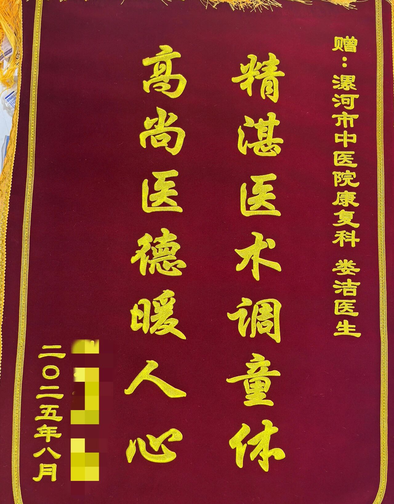 兩面錦旗映初心,仁心仁術(shù)暖童心 —— 漯河市中醫(yī)院兒童康復(fù)科獲患兒家屬誠摯致謝