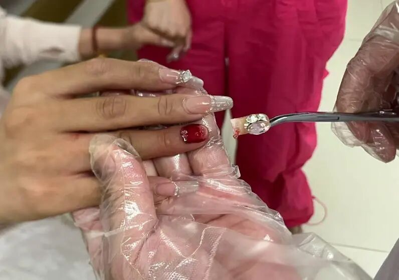 據(jù)了解,小文因不慎摔倒,右手著地時導(dǎo)致新做的美甲被連根掀起,伴隨劇烈疼痛,她隨即趕往醫(yī)院求助。醫(yī)生在清潔傷指后發(fā)現(xiàn),其指甲大部分已從甲床剝離。經(jīng)與患者溝通,醫(yī)護(hù)人員在無菌操作下為小文實施了拔甲術(shù),并叮囑其注意保護(hù)創(chuàng)口、避免感染,保持局部干燥,必要時可服用止痛藥緩解疼痛。如出現(xiàn)紅腫、滲液或發(fā)熱等感染跡象,須及時復(fù)診。