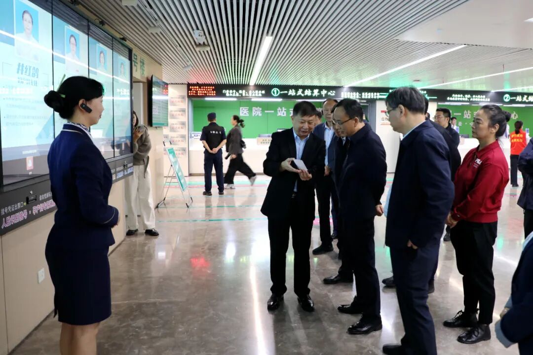 市人大趙耀嵩副主任一行首先聽取了市二院黨委書記魏松的工作匯報(bào)。魏松書記結(jié)合PPT內(nèi)容,圖文并茂介紹了醫(yī)院在優(yōu)化服務(wù)流程、檢驗(yàn)結(jié)果互認(rèn)、方便群眾就醫(yī)、醫(yī)?;鸨O(jiān)管、投訴端關(guān)口前移等方面的主要做法,表示醫(yī)院自開展集中整治活動(dòng)開展以來,通過一系列舉措,實(shí)現(xiàn)了患者就醫(yī)多項(xiàng)業(yè)務(wù)“一次到位”,價(jià)格公開、服務(wù)可查、投訴可追,醫(yī)院就診人次明顯上升,患者醫(yī)療費(fèi)用、群眾投訴顯著下降,群眾滿意度大幅提升。同時(shí),市人大視察組一行實(shí)地觀摩了病人一站式服務(wù)中心、醫(yī)保一站式結(jié)算中心和人臉識(shí)別掛號(hào)系統(tǒng)。隨后,視察組一行來到二樓內(nèi)科門診,現(xiàn)場(chǎng)觀看了患者檢驗(yàn)結(jié)果互認(rèn)的操作流程。