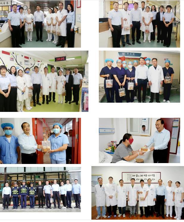 所到之處,暖意濃濃。每到一處,院領(lǐng)導都與大家親切交談,將承載著關(guān)心和祝福的慰問品送到大家手中,詳細詢問假期排班情況、保障措施落實情況,對大家堅守崗位、無私奉獻的精神給予高度贊揚,對職工家屬們的理解和支持表示感謝。同時,叮囑大家在全力保障醫(yī)療工作的同時,要注意休息。在病房里,院領(lǐng)導將精心準備的月餅送到住院患者及家屬手中,詳細詢問他們的恢復情況,并為他們送上節(jié)日的祝福。