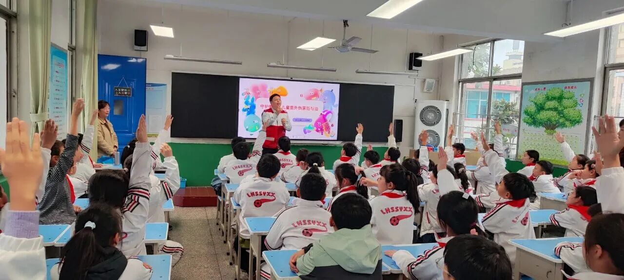 講座結(jié)束后,王戰(zhàn)磊又化身為孩子們的“安全知識大考官”,深入班級進行現(xiàn)場演示、講解和現(xiàn)場提問,并為每一位勇敢舉手回答的孩子,都送上了一份小紀念品。“之前聽說有同學(xué)被熱水燙到涂抹牙膏,原來這是錯誤的!如果遇到這種情況,我知道該怎么做了!”同學(xué)們的自救互救能力得到了有效提升。