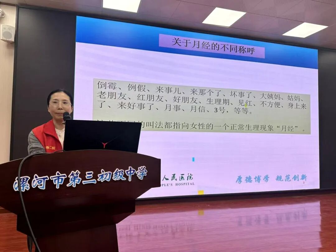活動現(xiàn)場,婦產科主任井紅鴿從月經的形成原理、周期變化,到日常護理的注意事項,用通俗易懂的語言,結合形象的圖示,讓女生們對自身的生理變化有了更深入地了解。特別強調了月經是女性正常的生理現(xiàn)象,是成長過程中不可或缺的一部分,鼓勵女生們摒棄傳統(tǒng)觀念中的羞恥感,以積極的心態(tài)接納和面對。隨后,針對女生們在青春期可能遇到的生理和心理問題,醫(yī)護人員和志愿者們也給予了耐心地解答和專業(yè)的建議,得到了學校師生的一致好評。