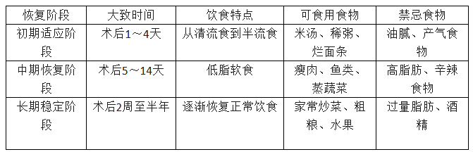 根據(jù)多位肝膽外科和消化內(nèi)科專家的共識(shí),膽囊切除術(shù)后的飲食恢復(fù)通常分為三個(gè)主要階段,以下是具體的恢復(fù)時(shí)間表:
