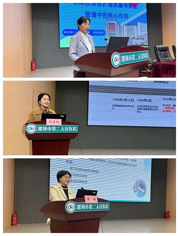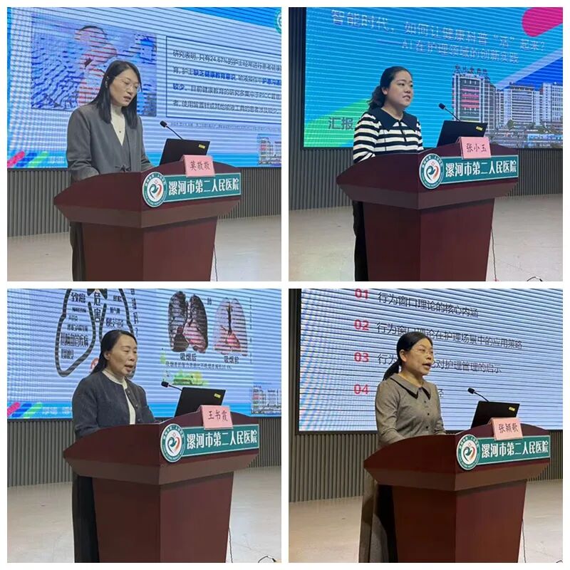 在學(xué)術(shù)交流環(huán)節(jié),多位護(hù)理專家圍繞健康教育的新理念、新方法與新技術(shù)展開深入探討。市二院護(hù)理部主任高凱霞分享了《健康教育在護(hù)理質(zhì)量與安全管理中的核心作用》;市中心醫(yī)院護(hù)理部副主任劉素紅講解了《基于賦能理論構(gòu)建三級(jí)醫(yī)院健康教育護(hù)士健康素養(yǎng)提升路徑》;市六院護(hù)理部副主任崔臻以《賦能·融合——構(gòu)建新時(shí)代醫(yī)院護(hù)理健康教育體系的實(shí)踐與思考》為題進(jìn)行交流;臨潁縣人民醫(yī)院護(hù)理部副主任張潁歌介紹了《基于行為窗口理論的護(hù)士高效能溝通技巧》;市二院普外科護(hù)士長王書霞圍繞《腫瘤患者營養(yǎng)與身心健康:吃出健康,動(dòng)出活力》展開講解;麻醉手術(shù)部副護(hù)士長莫敬敬探討了《基于指南的靜脈治療健康教育及溝通模式》;小兒外科骨干護(hù)士張小玉則就《智能時(shí)代,如何讓健康科普“活”起來?——AI在護(hù)理領(lǐng)域的創(chuàng)新實(shí)踐》進(jìn)行分享。專家們結(jié)合臨床實(shí)例,展示了健康教育的最新成果與實(shí)踐經(jīng)驗(yàn),內(nèi)容充實(shí),視角多元,為參會(huì)者帶來深刻啟發(fā)。